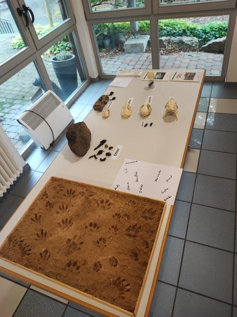 Da der Fischotter überwiegend nachtaktiv und sehr scheu ist, erfolgt sein Nachweis meist indirekt – über Spuren wie Trittsiegel oder Losung (Kot), mit der er sein Revier markiert. Um die dafür nötigen Erfassungsmethoden praxisnah zu vermitteln, brachte das Team neben theoretischem Hintergrundwissen auch Kotproben, Trittsiegel im Sand und Gipsabdrücke verschiedener Tierarten mit. So konnten sich die Teilnehmenden mit den typischen Merkmalen des Fischotters vertraut machen und erste Bestimmungsübungen absolvieren. Ergänzt wurde das Programm durch ein Bilderrätsel, das anschaulich verdeutlichte, wie schwierig es ist, semiaquatische Säugetiere zuverlässig zu erkennen, wenn sie nur für wenige Sekunden sichtbar sind – eine Herausforderung, die bei der Bewertung von Fischotter-Meldungen immer wieder eine Rolle spielt.