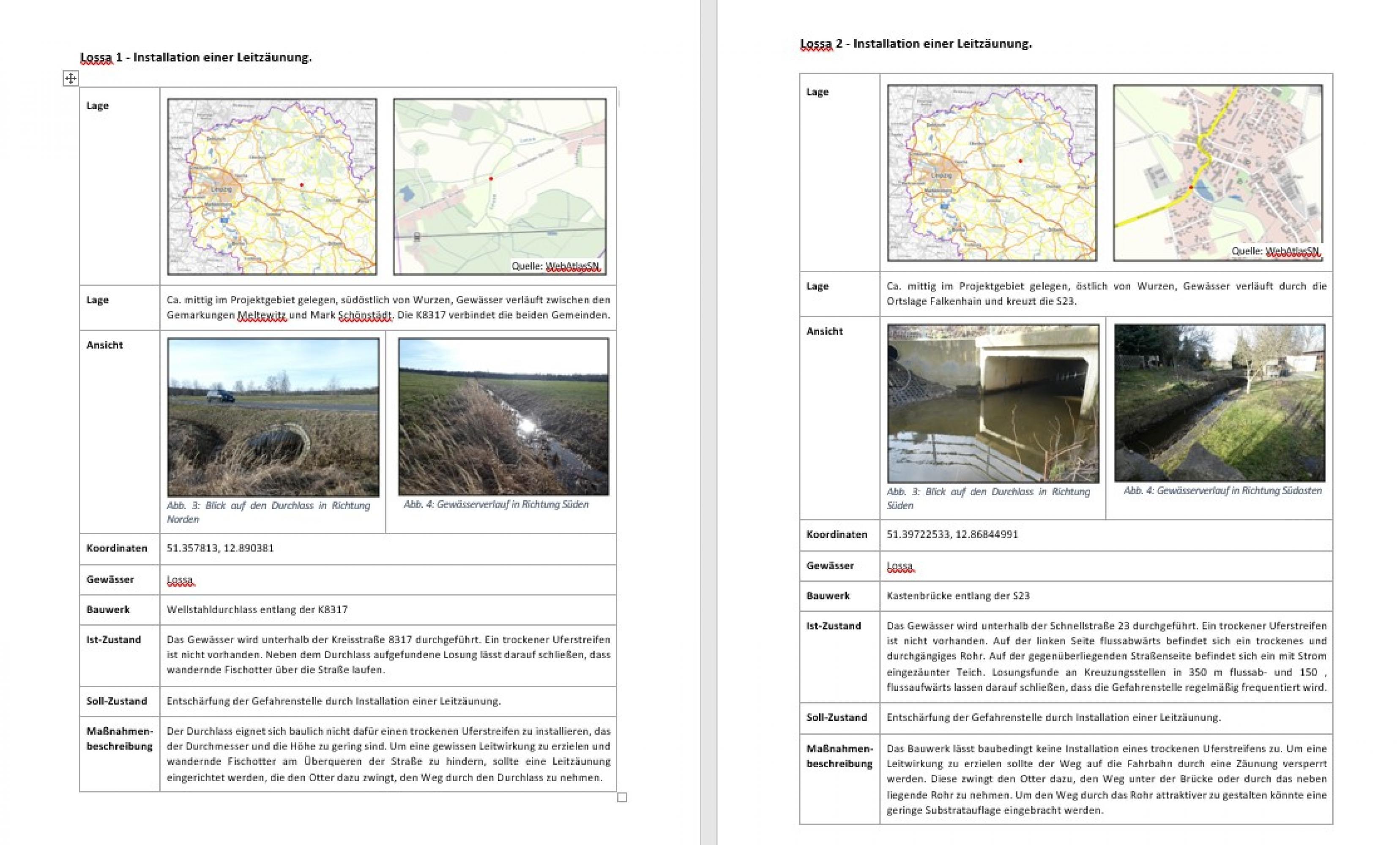 • Bereitstellung von ortskonkreten Maßnahmenbeschreibungen zur Umsetzung lokaler Fischotterschutzmaßnahmen an Gefährdungsstellen und Migrationshindernissen für Behörden und Akteure