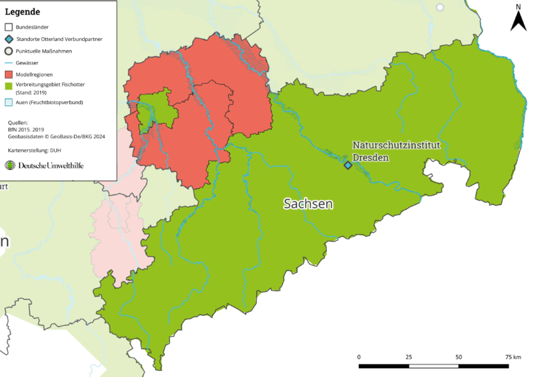 Sachsen ist eine wichtige Quellregion für Fischotter. Ausgehend von der Oberlausitzer Heide- und Teichlandschaft im Nordosten Sachsens, breitete sich der Fischotter seit den 1980er-Jahren entlang der Fließgewässer nach Süd- und Westsachsen aus. Die Funktion als Quellregion – auch für benachbarte Gebiete – soll insbesondere durch Lebensraumschutz und Schutz der Einzeltiere sowie die Herstellung barrierefreier Migrationsrouten gesichert werden. Das Teilprojekt soll die Bedingungen im Biotopverbund zur Ausbreitung des Fischotters in südwestlicher Richtung begleiten und verbessern. Ziel ist die Vernetzung der Gewässerlandschaften, um weitestgehend ungestörte Wanderbewegungen des Fischotters zu ermöglichen.